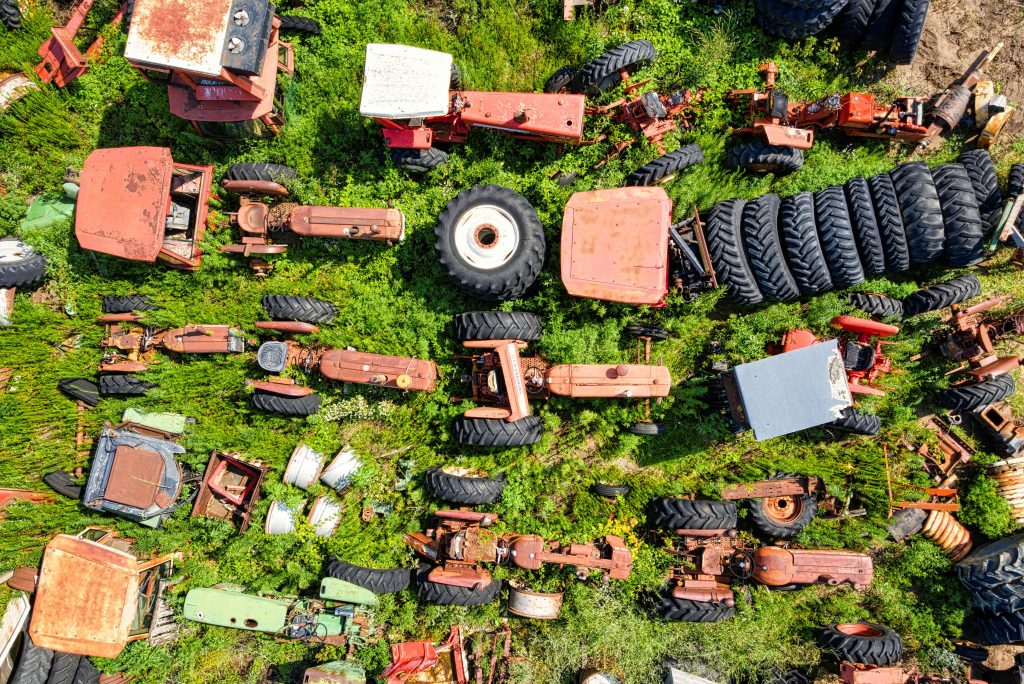 consists of worn-out loaders, backhoes, and their parts like arms, buckets, and axles. These machines contain heavy-duty steel and are commonly recycled for their high metal value.
